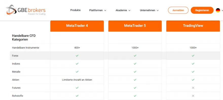 Unser Testergebnis zeigt: GBE Brokers ist ein hervorragender Online-Broker , der eine breite Palette von Handelsinstrumenten anbietet.