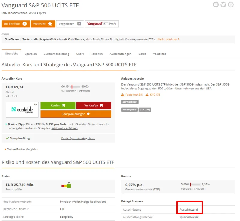 Es gibt auch noch ausschüttende ETFs. In der Regel wird bei einem Unternehmen ein Gewinn als Dividende regelmäßig an die Aktionäre ausgeschüttet. Wenn Aktien in einem Fonds stecken, dann fließt die jeweilige Dividende zuerst in den Fonds.